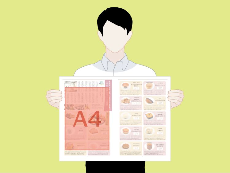 A4冊子に比べると紙面スペースはおよそ1.75倍に。新聞サイズだからこそのダイナミックな紙面展開が可能です。コート紙と比べて反射が少ないので目がチカチカせず、年配の方でも読みやすいと好評です。