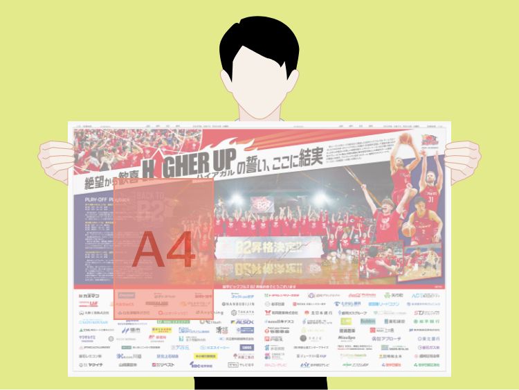 ブランケット判の半分のサイズのタブロイド判を印刷するサービスです。